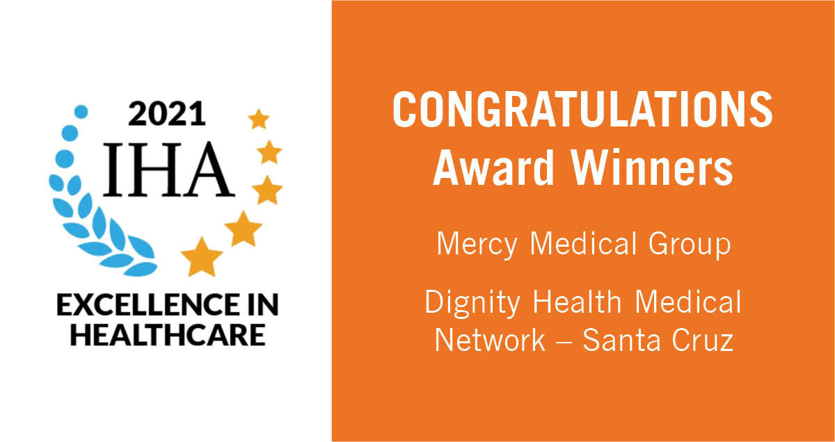 Dignity Health Medical Network – Santa Cruz and Dignity Health Mercy Medical Group were two of just a few physician organizations in California to receive the 2021 Excellence in Healthcare Award, California’s top honor for provider organizations, from the Integrated Healthcare Association (IHA) for its top performance in clinical quality, patient experience and cost measures.