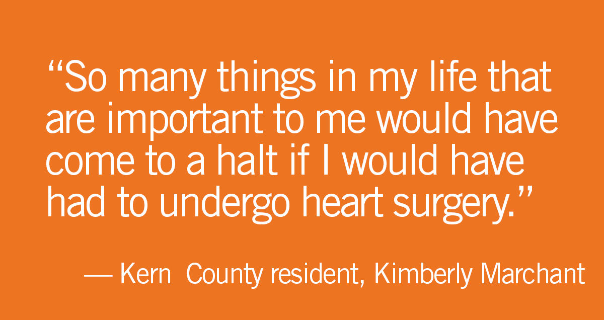 When Kern County resident, Kimberly Marchant first found out she had a blood clot in her heart that needed to be removed, her first thought was “I don’t know how I’m going to do this.” Kimberly was thinking about how she would manage the recovery from open-heart surgery, the proposed treatment for her condition.