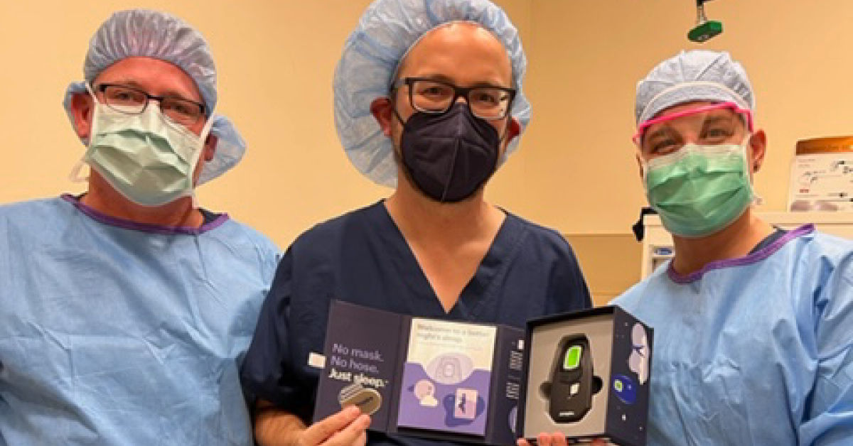 We’re pleased to share that Scott McCusker, MD, Ear, Nose and Throat surgeon; Ash Aveningo, PA; and Mike Desy, OR tech with Dignity Health Mercy Medical Group, completed the first Inspire procedure at the 8220 Wymark Dr. location in Elk Grove, CA. The Inspire system is an FDA-approved obstructive sleep apnea (OSA) treatment option for people who cannot use standard Continuous Positive Airway Pressure (CPAP) therapy.