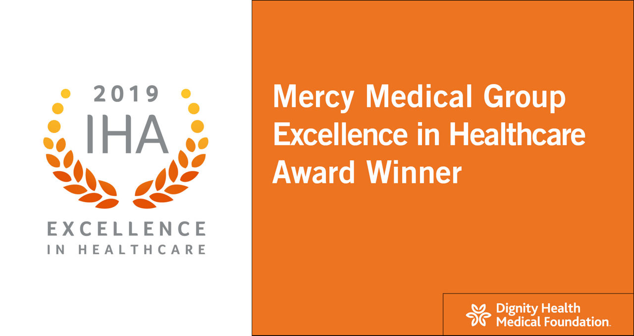 Dignity Health Medical Foundation today announced that Mercy Medical Group is one of just 28 physician organizations statewide to receive the 2019 Excellence in Healthcare Award from the Integrated Healthcare Association (IHA). This honor recognizes physician organizations that perform in the top 50 percent in three major areas: clinical quality, patient experience, and total cost of care.