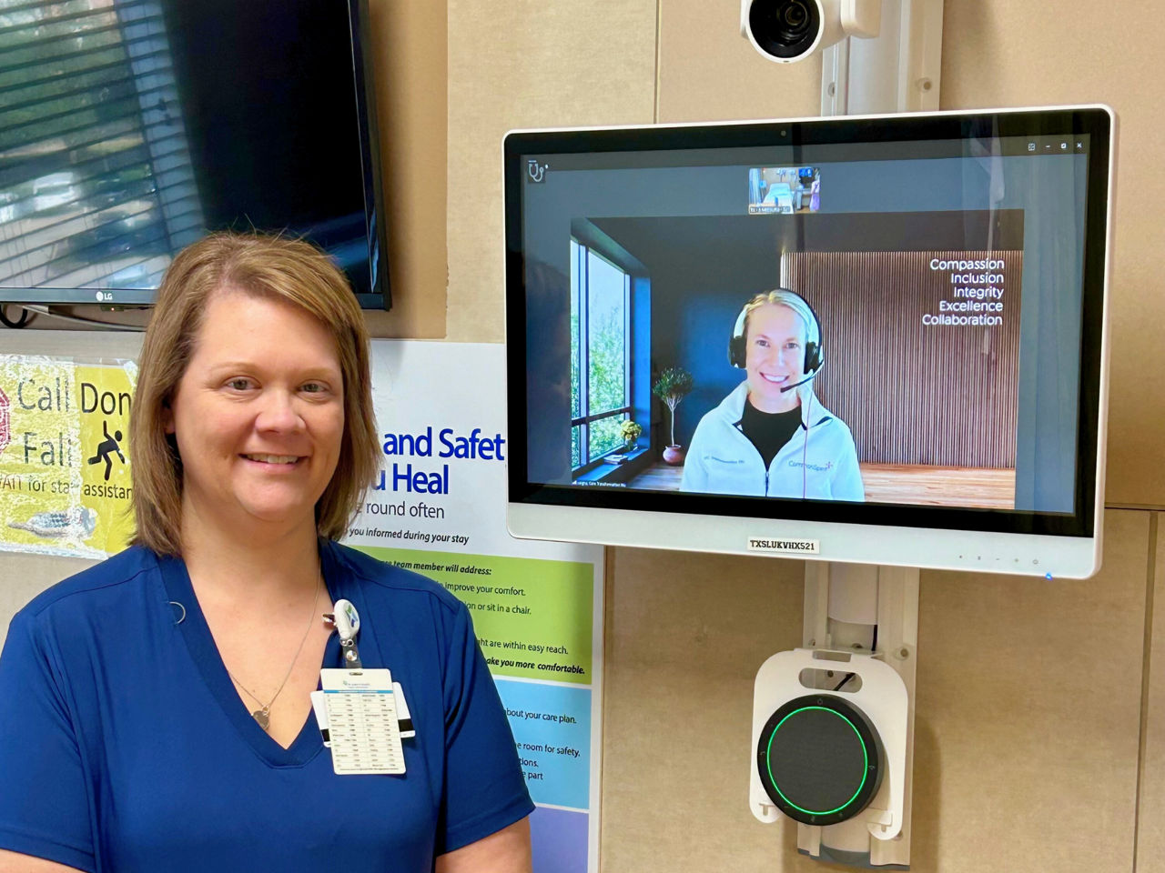 A new way to connect families: VIC makes it easy for relatives who can’t be at the bedside to join conversations. Virtual nurses can send a secure video link so family members can see the room, speak with staff and participate in care planning, explained South Region Director of VIC Nursing Care Laura Barker, MSN, RN, CVRN. “Virtual nurses can bring the whole care team together on one call — bedside nurse, provider and family — in ways that weren’t possible before,” she said.